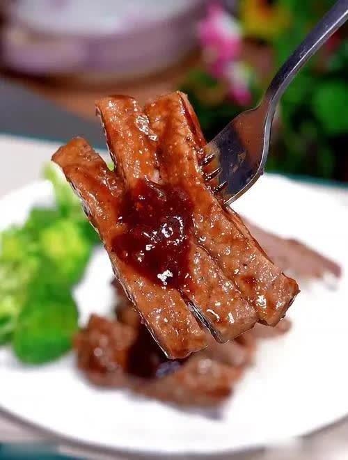 3. 煎好的牛排取出,放在盘子上,静置 5 分钟,让牛排的汁水充分渗透,然后切成小块即可。